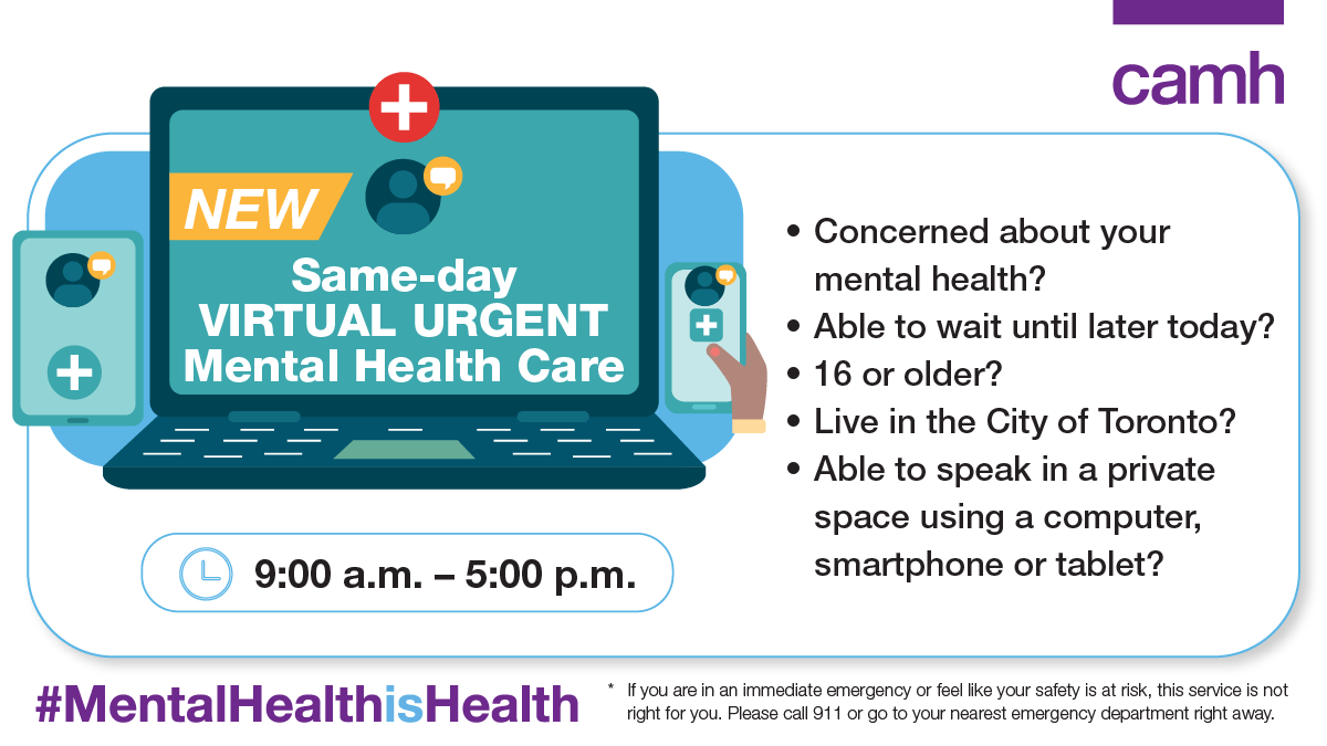 Camh On X Camh Is Thrilled To Launch Canada S First Hospital Based Same Day Virtual Urgent Care Clinic For Mentalhealth This Service Offers Same Day Virtual Mental Health Support To People Aged 16 Who Live